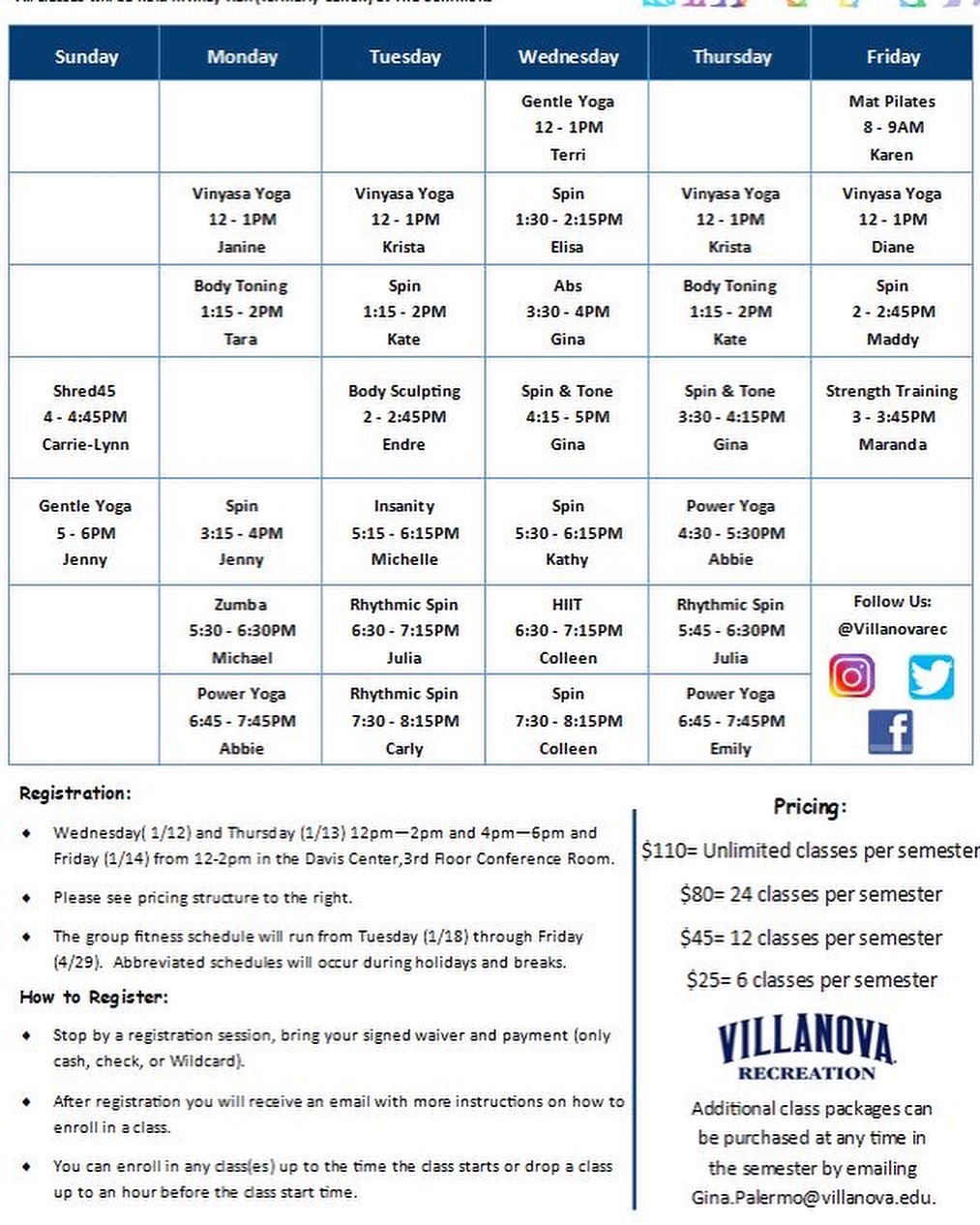Villanova Recreation On Twitter Group Exercise Registration Starts Today In The Davis Center 3rd Floor Conference Room Https T Co Kv4gjaurtq Twitter